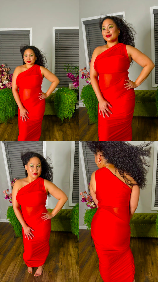 Red Mesh Ruched Dress (worn two different way)