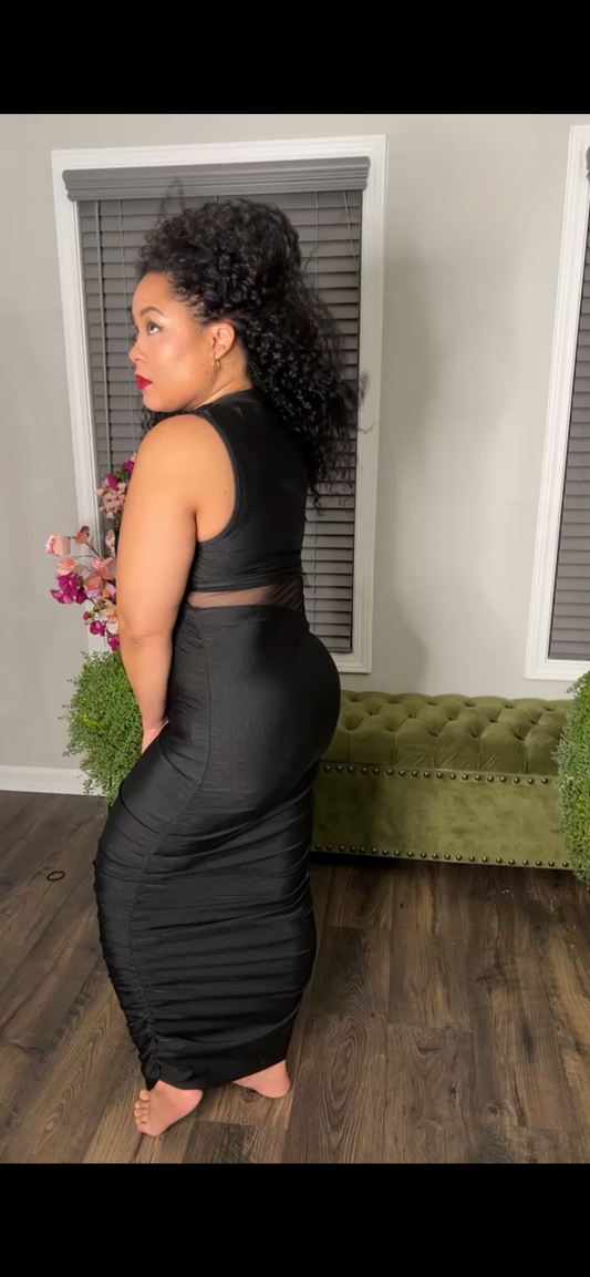 Sold outBlack Mesh Rushed Dress