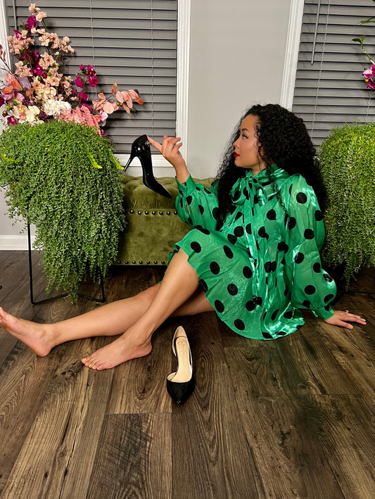 Long Sleeve Ruffle Top (Bow Neck)Green